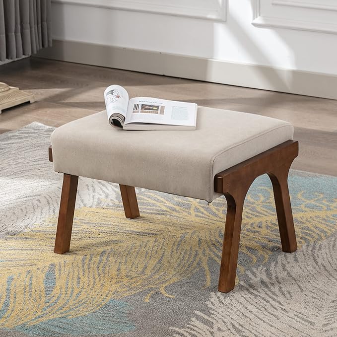 chairus 2 Sets Mid-Century Modern Accent Chairs with Ottoman, Linen Fabric Armchair with Wood Legs Comfy Upholstered Single Sofa Chair for Living Room/Bedroom/Lounge, Beige