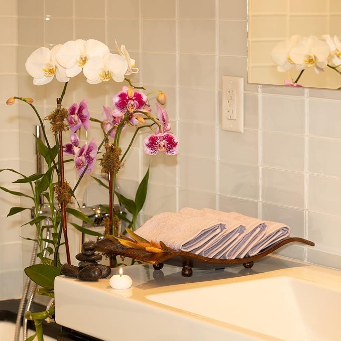 Mosobam Luxury Turkish 14pc Deluxe Bath Bundle Body Hand Face Towel and Mat Lavender Aura 700 GSM & 1000 GSM Bamboo Viscose & Aegean Turkish Combed Cotton