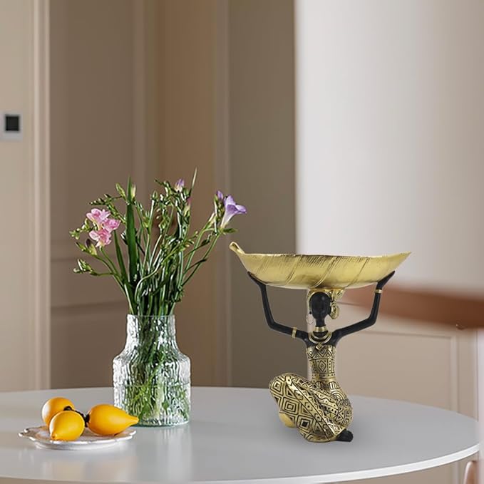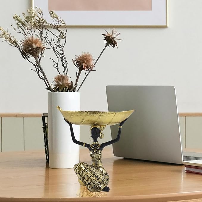 - Unique Home Decor: This sacred and elegant sculpture of an African tribal lady is the perfect addition to your home decoration style. And the leaves held by women can be used as trays or candle holders. You can put candy, keys, candles and other small objects on the leaves.