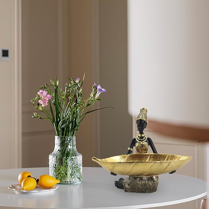 - Unique Home Decor: This sacred and elegant sculpture of an African tribal lady is the perfect addition to your home decoration style. And the leaves held by women can be used as trays or candle holders. You can put candy, keys, candles and other small objects on the leaves.
