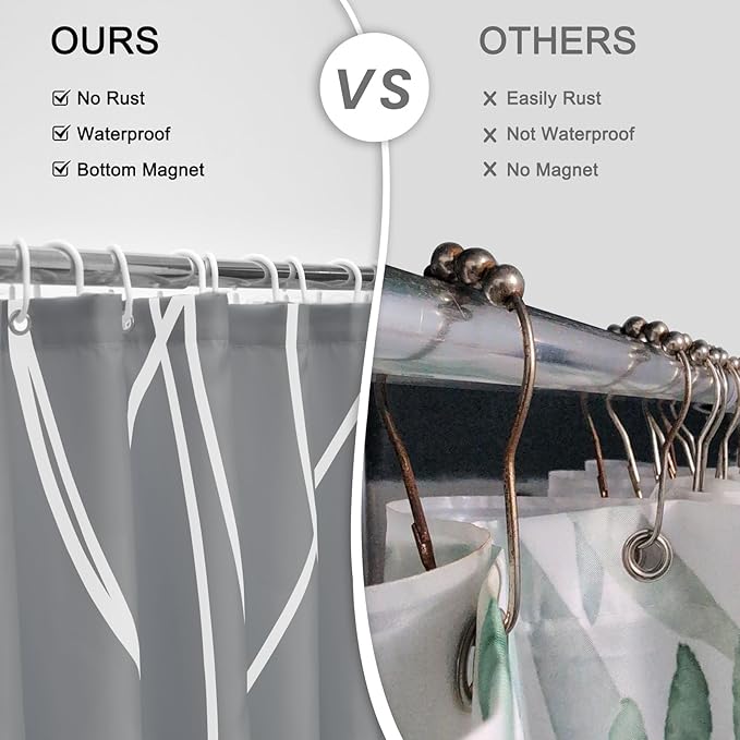 - EASY TO INSTALL -- This shower curtain set includes hooks for easy installation. The bottom of the shower curtain is designed with a 20g weighted hem, making it less likely to be lifted by the wind.