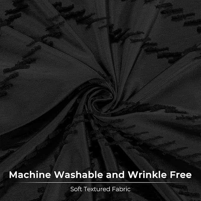 - BLACK SHOWER CURTAIN - We've created this shower curtain with a textured pattern to add elegance to your bathroom. The chenille woven chevron design is a black color to match the background for a modern look.