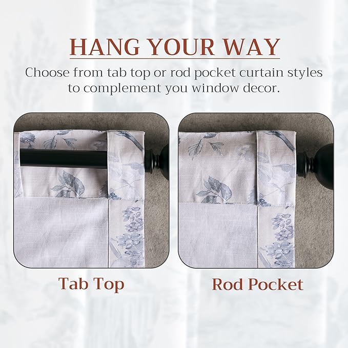 - High-quality cotton: Made from 100% breathable cotton, this curtain with rod and loop pockets offers a soft, elegant touch to any space. Ideal for living room, bedroom, dining, or home office, it brings charm and character without overwhelming your décor