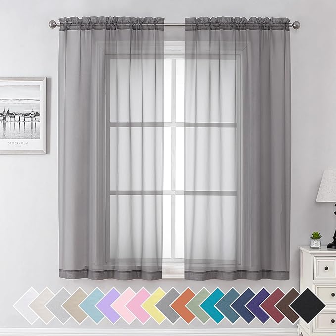 Aiyufeng Grey Sheer Curtains for Bedroom, Semi Sheer Privacy Curtains & Drapes Sunlight Filter for Hallway Window Guest Room Country House, 40 x 63 inches Long, 2 Panels