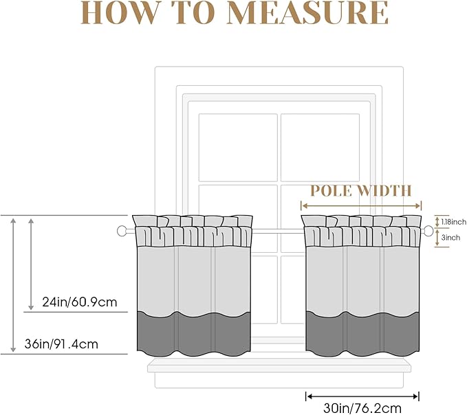 - ★EXQUISITE WORKMANSHIP: All edges are carefully stitched without uneven hems, we pay attention to every detail of the kitchen curtains, and the 3'' rod pocket makes the panels drape perfectly and beautifully over your windows.