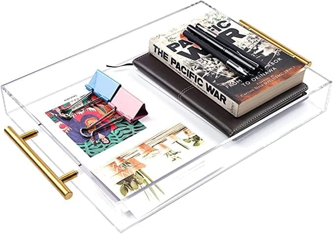 - Multi-function Usage: This clear tray size is 12x12x2 inches. We have small, medium, large different capacity can meet all your needs. Suitable for your home, bars, workplace use. Perfect for makeup table tray, nightstand tray, coffee, and tea snack serving tray, even use for bathroom decoration tray. Keep your home organized.