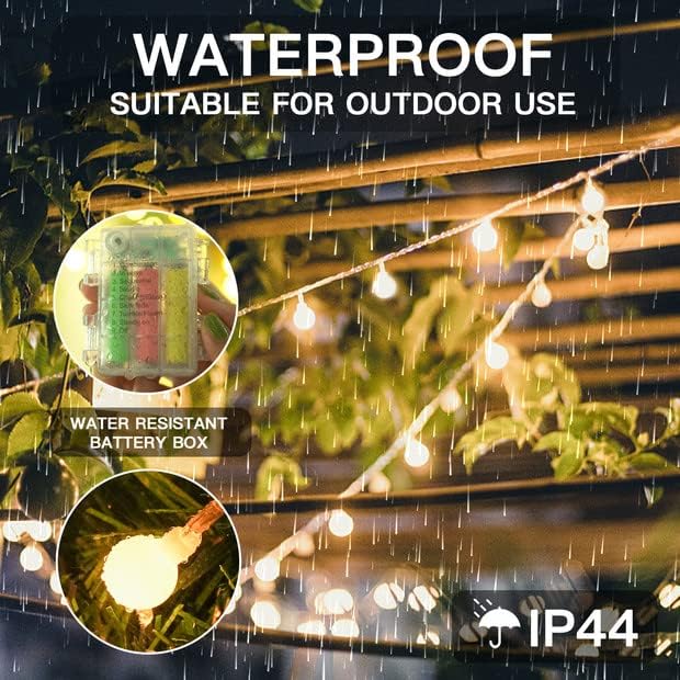 - WATERPROOF CHRISTMAS LIGHTS: With an IP44 waterproof rating, the warm string lights can withstand normal weather conditions, no need to disassemble the string lights on rainy days. Additionally, the led string lights are heat-resistant, and stay cool for long time use.