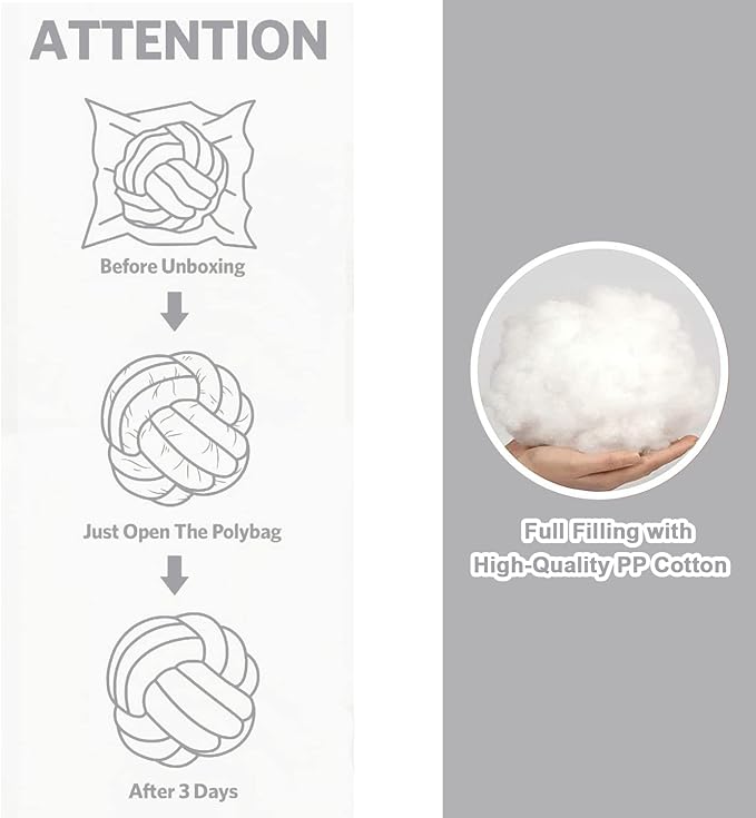 - 【WARM TIPS】Because we use vacuum packaging, when you first receive Knot Throw Pillows, you need to dry it in the sun for three days, and wait for it to return to its original shape without wrinkles.