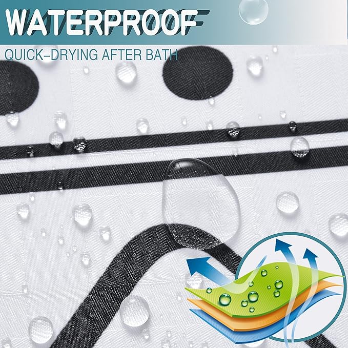 - HIGH QUALITY FABRIC : Made from premium polyester, Anti-wrinkle, Heat-resistant, Waterproof, this shower curtain is water repellent, high quality material for a healthier bathroom environment for you, kids and your entire family.