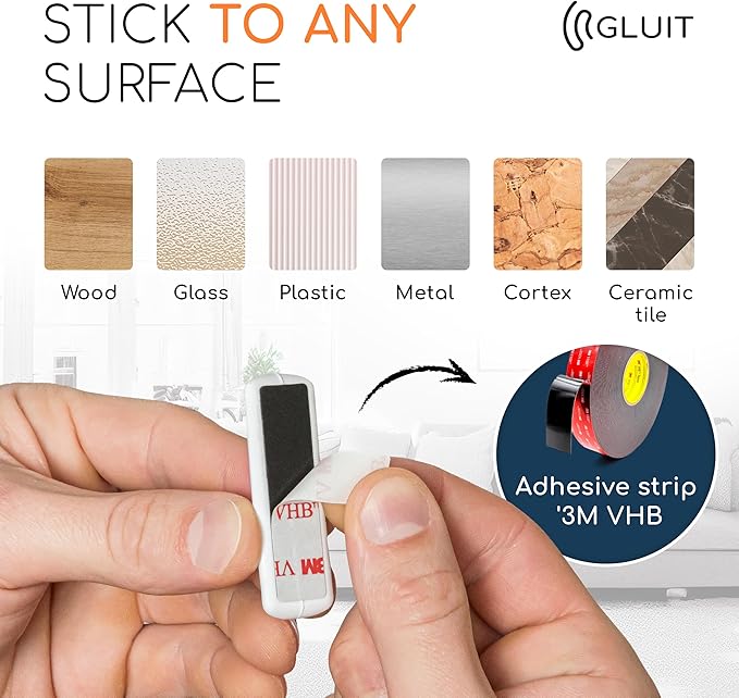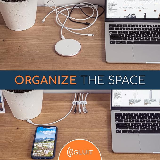 - Secure Cord Holders: GLUIT's dependable cord holders firmly secure cables, preventing slippage or loss. These organizers foster a neat, productive workspace for enhanced focus. Keep your cables organized on any surface with our easy-to-use, adhesive-backed wire clips. These clips are perfect for securing cords, chargers, headphones, and more