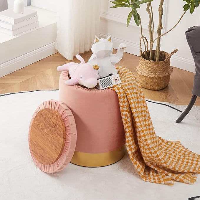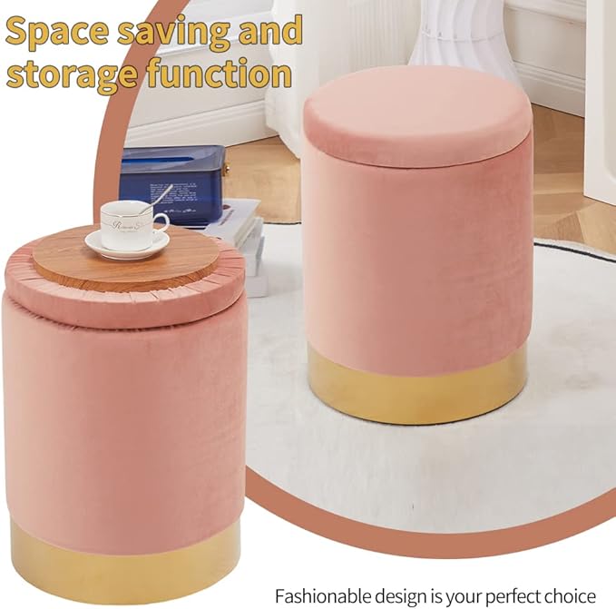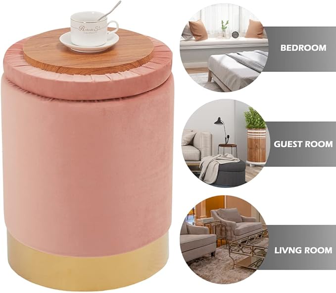 - Multipurpose Design:The magical round velvet storage ottoman could be used as a footrest stool, padded Seat, vanity stool etc; At the same time, our upgraded upholstered lid can be flipped from a sofa stool to a small coffee table. Modern design adds convenience to your life and is beautiful.