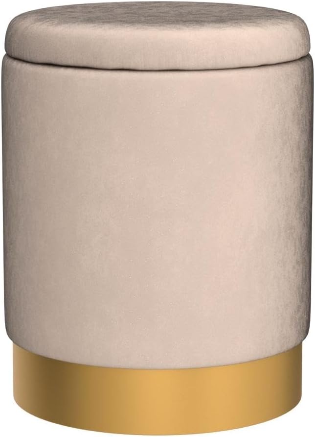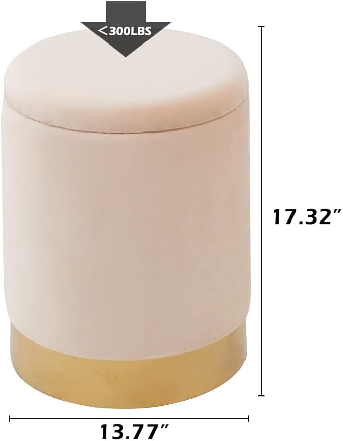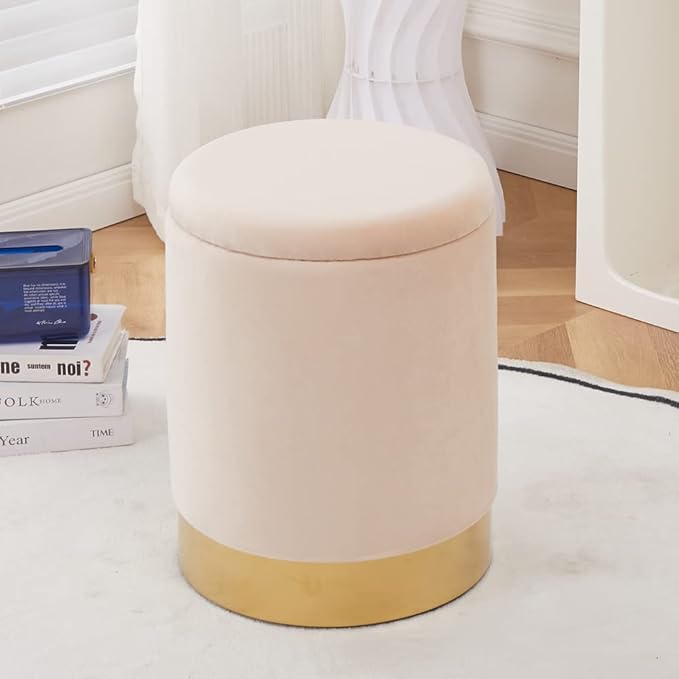 Mxfurhawa Velvet Storage Ottoman Multipurpose Footrest Stool with Metal Base Modern Round Vanity Stool Chair Ottoman Foot Stools Support 300 lbs Padded Seat for Living Room (Champagne)
