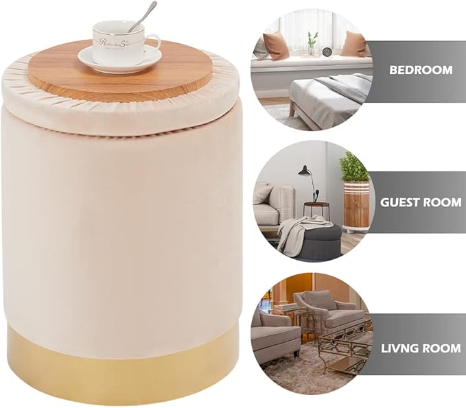 - Multipurpose Design:The magical round velvet storage ottoman could be used as a footrest stool, padded Seat, vanity stool etc; At the same time, our upgraded upholstered lid can be flipped from a sofa stool to a small coffee table. Modern design adds convenience to your life and is beautiful.