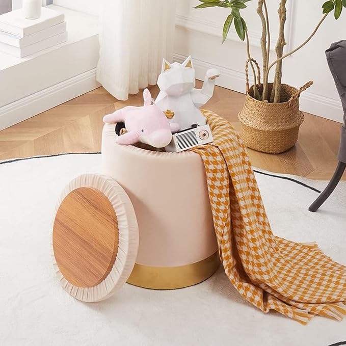 - Multiple Using Scenarios:Our storage ottoman has a gold-plated base and comes in different fabrics and colors to match your different home decor styles; Can perfectly fit multiple scenarios such as bedroom, living room, bathroom, entryway, etc.