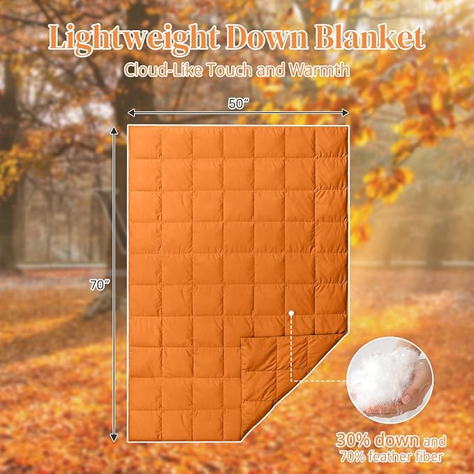 - Comfy Fabric: The lightweight down throw blanket is made of quality microfiber cover and filled with 70% feather fiber and 30% premium down which brings you ultimate warmth and coziness