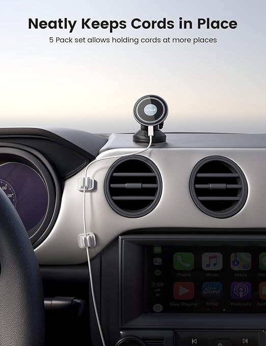 - Make Your Life Easier: Using this cable clips holder to tidy up your cluttered cords, make your numerous cables nicer, organized, and safer. 5 Pcak clips allows you to use in more places. Like desktop, tableside, table corner, office, wall or inside the car