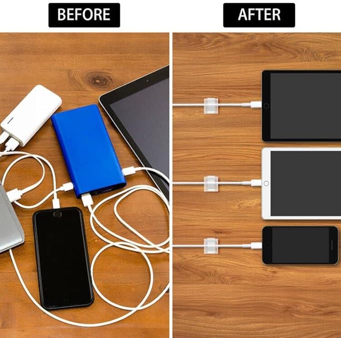 - Self-Adhesive Clips: Sticky cable holder clip with self adhesive pad can grip the surfaces stably which can be removed easily without damage to the desktop and with no residue leaving on the surfaces.