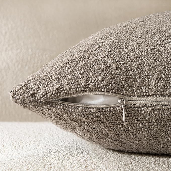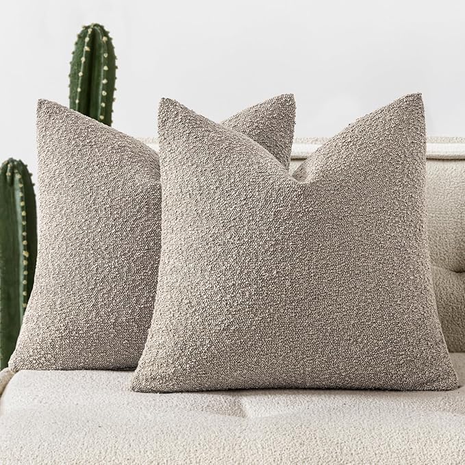 Woaboy Pack of 2 18x18 Inch Decorative Boucle Throw Pillow Covers Textured Square Pillowcaes Accent Solid Cozy Soft Cushion Covers Home Decor for Sofa Couch Living Room Home Decor,Light Brown