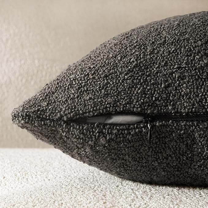 Woaboy Pack of 2 18x18 Inch Decorative Boucle Throw Pillow Covers Textured Square Pillowcaes Accent Solid Cozy Soft Cushion Covers Home Decor for Sofa Couch Living Room Home Decor,Dark Coffee