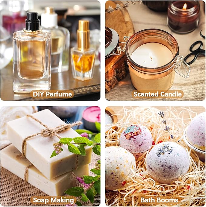 - Wide Applications: Great for aromatherapy, vaporizing, bath, massage, oil burner, spa, relax, skin & hair care and so on. You can also combine essential oils with your imagination and creativity for DIY projects such as soaps & candles making, DIY perfume & bath bombs or other fun ideas making.