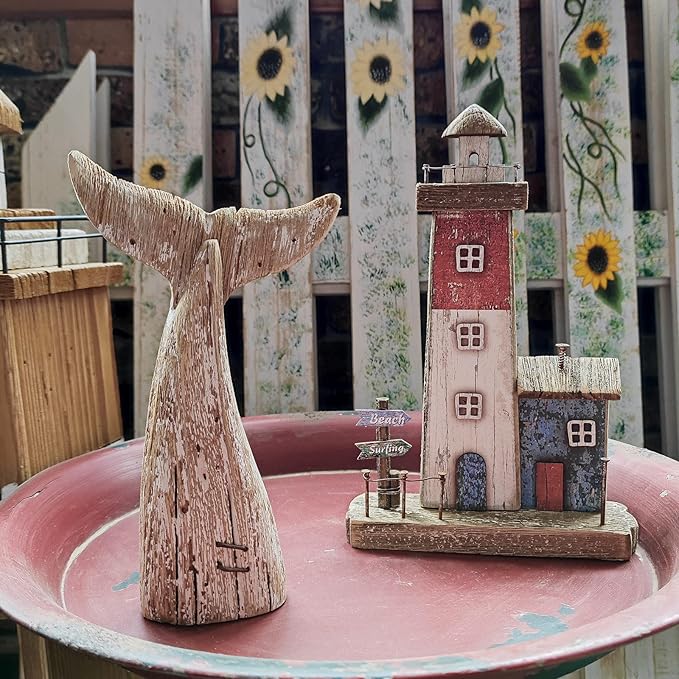 - 🐳The whale tail home decor is made of premium and natural wood and iron, designed with rustic style, durable and sturdy enough for a long time use.