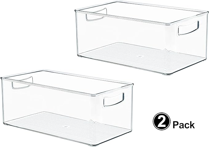 Hudgan 2 Pack Straight Sides Stackable Pantry Organizer Bins for Home Edit - 13.5''L x 7.5''W x 5.5''H