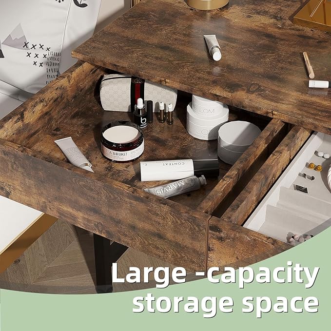 CAIYUN 40“ Small Desk for Bedroom, Computer Desk with 2 Wooden Drawers, Home Office Desk with Storage, Vanity Desk, Kids Study Writing Desk for Small Space, Vintage Table for Bedroom,(Rustic Brown)
