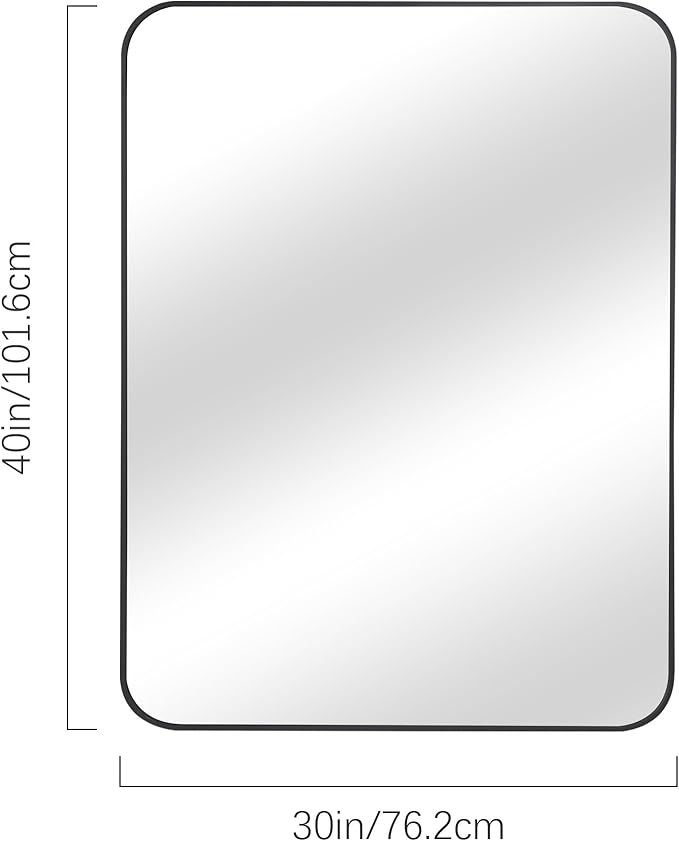 - [EXCELLENT DESIGN]: Our rounded rectangular wall mirror is designed with a kind of fashion and modern industrial style. The frame is made of brushed black metal with an angled design to protect the mirror. Besides, the black mirror is anti-stripping, anti-cracking and anti-water,and it is safer and more premium than traditional recessed frames.