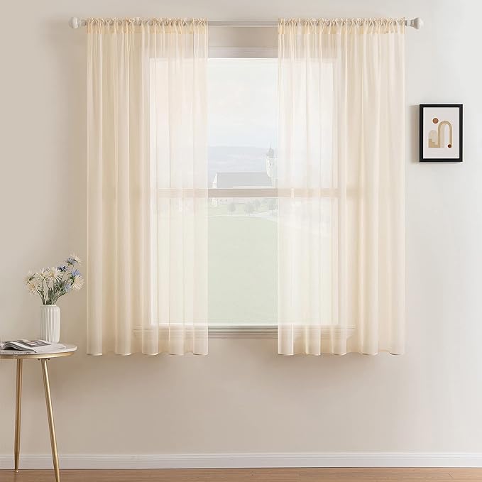 MIULEE Cream Beige Window Sheer Curtains for Bedroom Living Room Solid Elegant Net Drapes 2 Panels Width 38 x Length 63 Inches