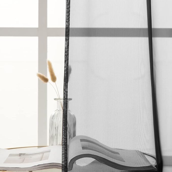 MIULEE Short Sheer Curtains 30 Inch Length for Kitchen Bathroom Cafe Half Halloween Window Treatment, Rod Pocket Tier Curtains 2 Panels, 29x30 Inches Long, Black