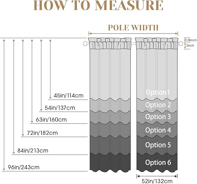 - ★EXQUISITE WORKMANSHIP: All edges are carefully stitched without uneven hems, we pay attention to every detail of the curtains, and the 3'' rod pocket makes the panels drape perfectly and beautifully over your windows.