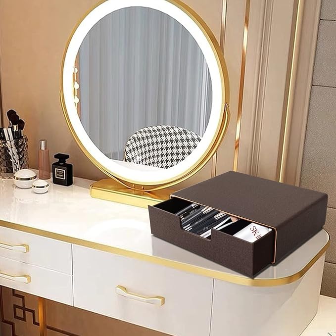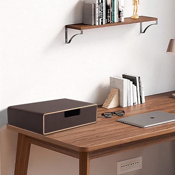 Stackable Organizer Drawer Classic Brown Pu Leather Handmade,Organize Home Office Desk Accessories and Sort Letter-Size Paper/a4 Document,Desk Caddy with Drawers Storage Box,13.1x10x3.7inches