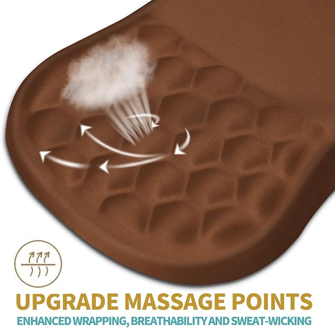 - 【Ergonomic Massage Design】The innovative ergonomic 8-degree slope and massage bump design perfectly support the wrist and palm. Massage bump design can effectively relieve wrist pain and fatigue, improve carpal tunnel syndrome (CTS), strengthen the air circulation between wrist and mouse pad, prevent sweating, and keep your wrist in the most comfortable state.