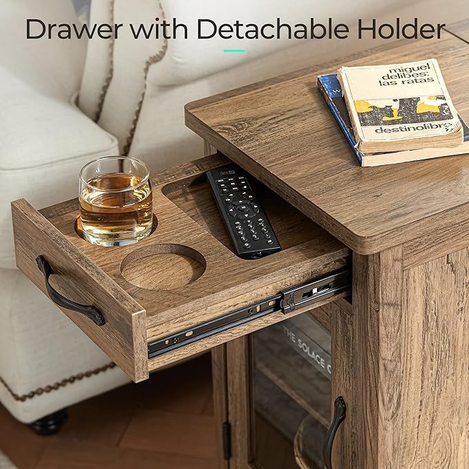 LINSY HOME Farmhouse End Table with Charging Station, Narrow Side Table for Living Room, Sofa Side Table with Drawer and Storage Cabinet, Small Nightstand for Home Office