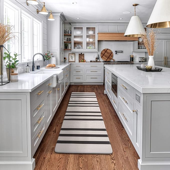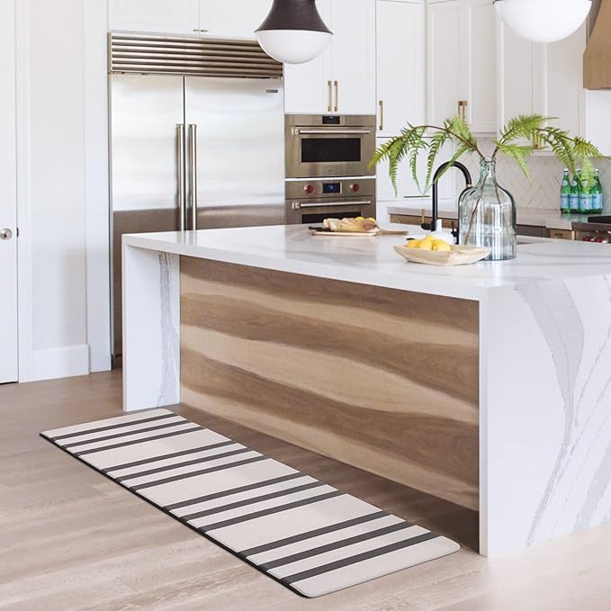 - Sophisticated Stripes Design - With the sophisticated yet effortless block stripes design, our kitchen rug is a game-changer for anyone looking to elevate their kitchen decor. The expertly designed pattern adds a touch of sophistication no matter your interior style.