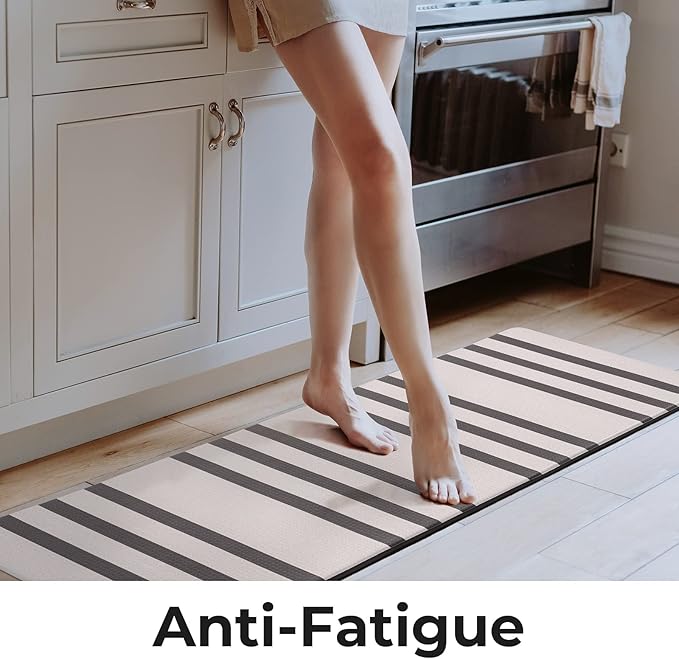FRESHMINT Farmhouse Stripe Anti-Fatigue Kitchen Mat Set of 2, Cushioned Foam Kitchen Mats for Floor, Waterproof Non Slip Comfort Mat, Modern Kitchen Rug for Kitchen Decor, Sink, Laundry, Office