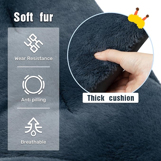 HollyHOME X-Large Saucer Chair, Comfy Oversized Folding Chair, Faux-Fur Reading Chair for Teens, Adults, Foldable Accent Lazy Chair, Metal Frame Lounge Chair for Living Room, Bedroom, Dorm, Navy Blue