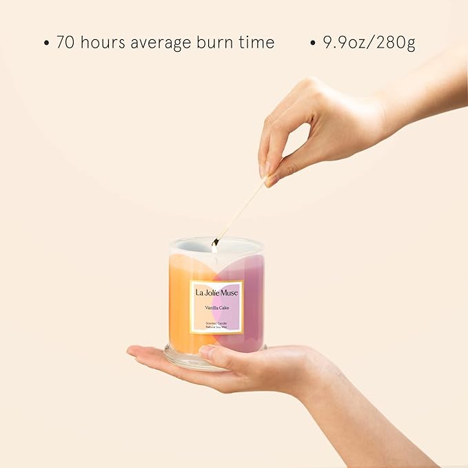 LA JOLIE MUSE Scented Candlse, Vanilla Cake Candle, Luxury Candle Gift, House Warming Gift for New Home, 70 Hours Burning Time