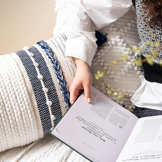 BlissBlush Navy Dark Blue Boho Decorative Lumbar Pillow Cover 14x36, Long Body Pillow for Bed, Accent Lumbar Throw Pillow for Couch, Modern Farmhouse Textured Pillowcase