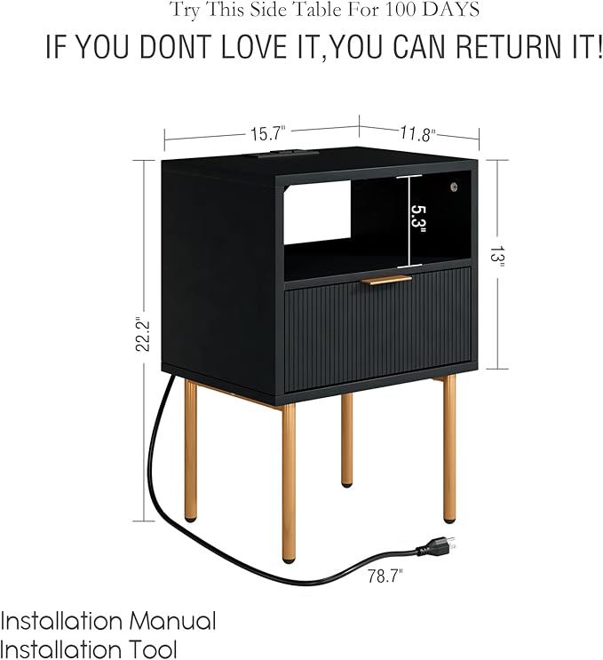 - Embrace an Modern Vibe:Mixing classic black with matte gold, graceful lines,this nightstand emits an modern vibe in your bedroom. It can also catch eyes as a side table or end table throughout the home,adding elegance to home life.