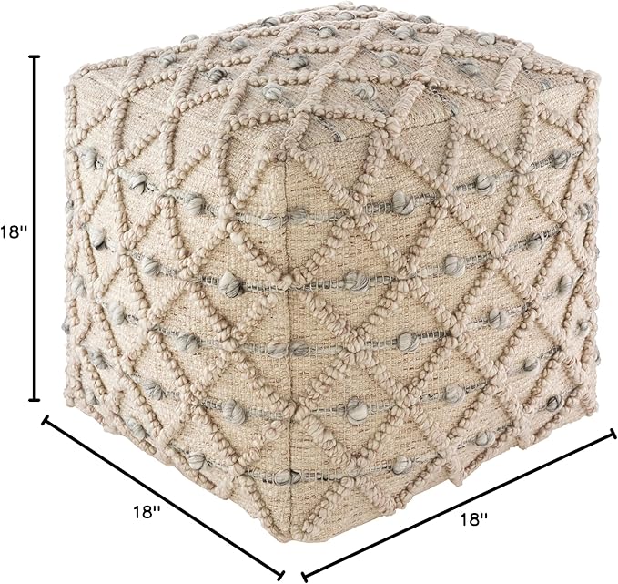 - 【PRODUCT SPECIFICATIONS】Colors: Light Gray, Charcoal, White, Khaki | Dimensions: 18"H x 18"W x 18"D | Style: Bohemian/Global | Shape: Cube | Construction: Hand Woven