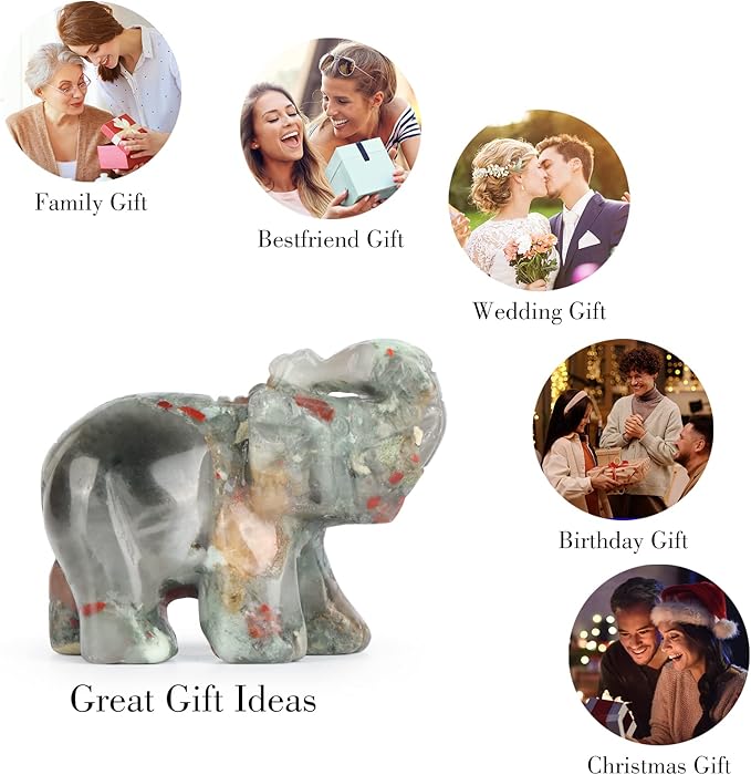 - 【Healing Elephant Figurine is Unique】:Handmade elephant statues made of natural stone,well details and texture.Due to stones' natural characteristics,maybe you received the stone is slightly vary from the image.