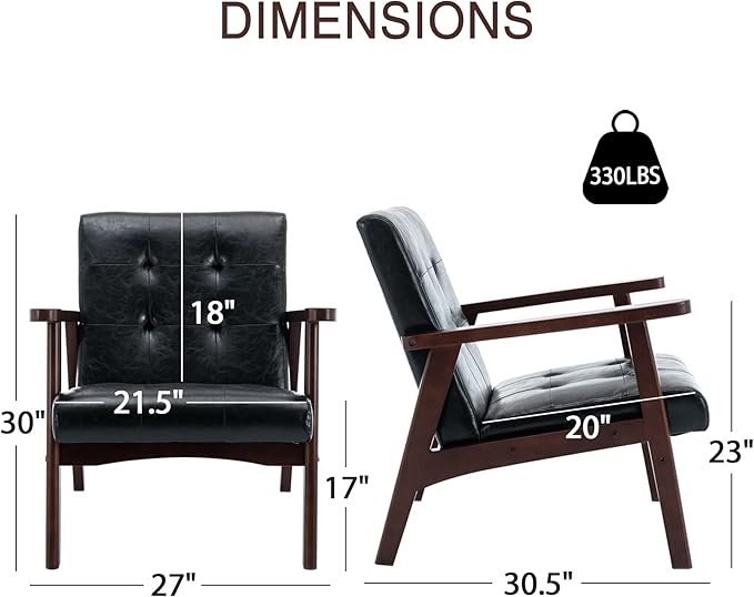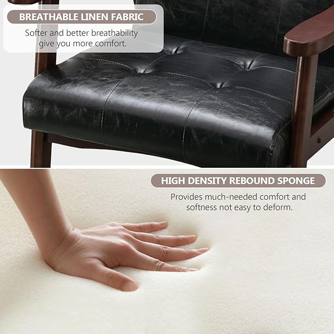 Bonzy Home Mid Century Modern Accent Chairs Set of 2 for Living Room, Upholstered Faux Leather Armchair Comfy Retro Bedroom Side Chair with Solid Wood Frame, Black