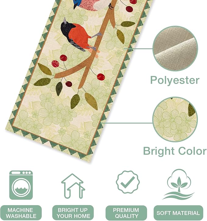 Seliem Summer Birds Tree Branches Table Runner, Cardinal Home Kitchen Dining Decor, Spring Seasonal Farmhouse Decorations Indoor Outdoor Party Supply 13 x 60 Inch