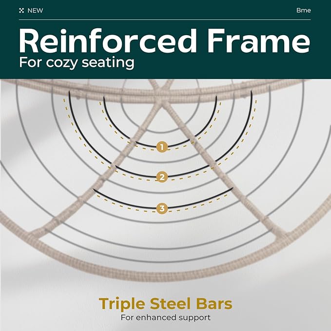 - HEAVENLY COMFORT WITH PLUMP CUSHION: Our upgraded papasan chair cushion has 9.48 pounds of padding fiber, 6 3/4 inches thickness, plus an airy TC inner fabric for added comfort and coziness; Three straps secure the large papasan cushion on the round wicker chair frame, preventing it from slipping away; The cushion should be shaken and fluffed up regularly to maintain the shape