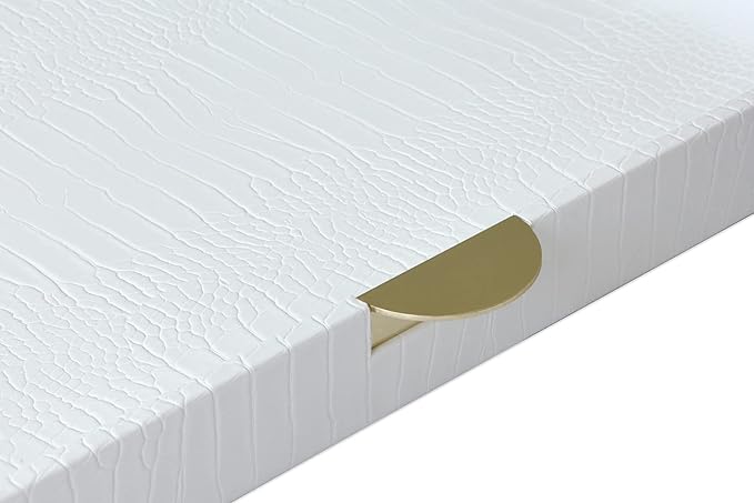 HofferRuffer Extra Large Square Serving Tray, Elegant Faux Leather Ottoman Tray with Gold Hardware Handles, Serve Tea, Coffee or Breakfast in Bed, 23.6 x 23.6 inches, White Large Square