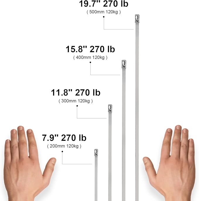- [Premium Stainless Steel Cable Zip] Made of all 304 material, the stainless steel cable tie comes with excellent acid and alkali resistance, abrasion resistance, and anti-aging.