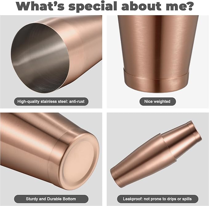 Lallisa 10 Pieces Cocktail Shakers Professional Bar Boston Shaker Set Stainless Steel Martini Shaker Drink Mixer Basic Tools Weighted Shake Metal Can for Bartenders, 18 Oz, 28 oz(Copper)
