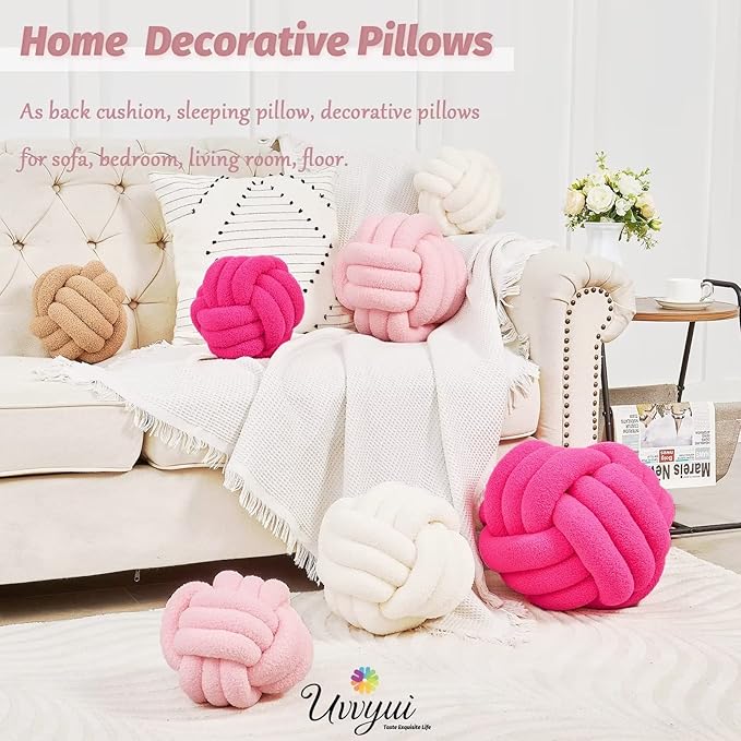- 【KNOT BALL PILLOW】Uvvyui round throw pillow is made of high quality PP cotton filling and lamb wool fabric covering makes this Knotted Pillow soft and warm, good elasticity, not easy to deform, breathable, fluffy and elastic, every time you hold this plush knotted pillow in your arms , can provide you and your family with a comfortable feeling.