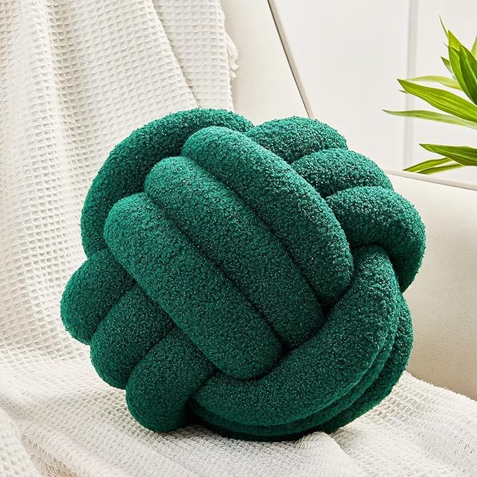 Uvvyui Knot Pillow Ball, Soft Home Decorative Pillows, Round Throw Pillow, Handmade Knotted Plush Pillow, Round Boucle Pillow Cushion (11 Inches Dark Green)